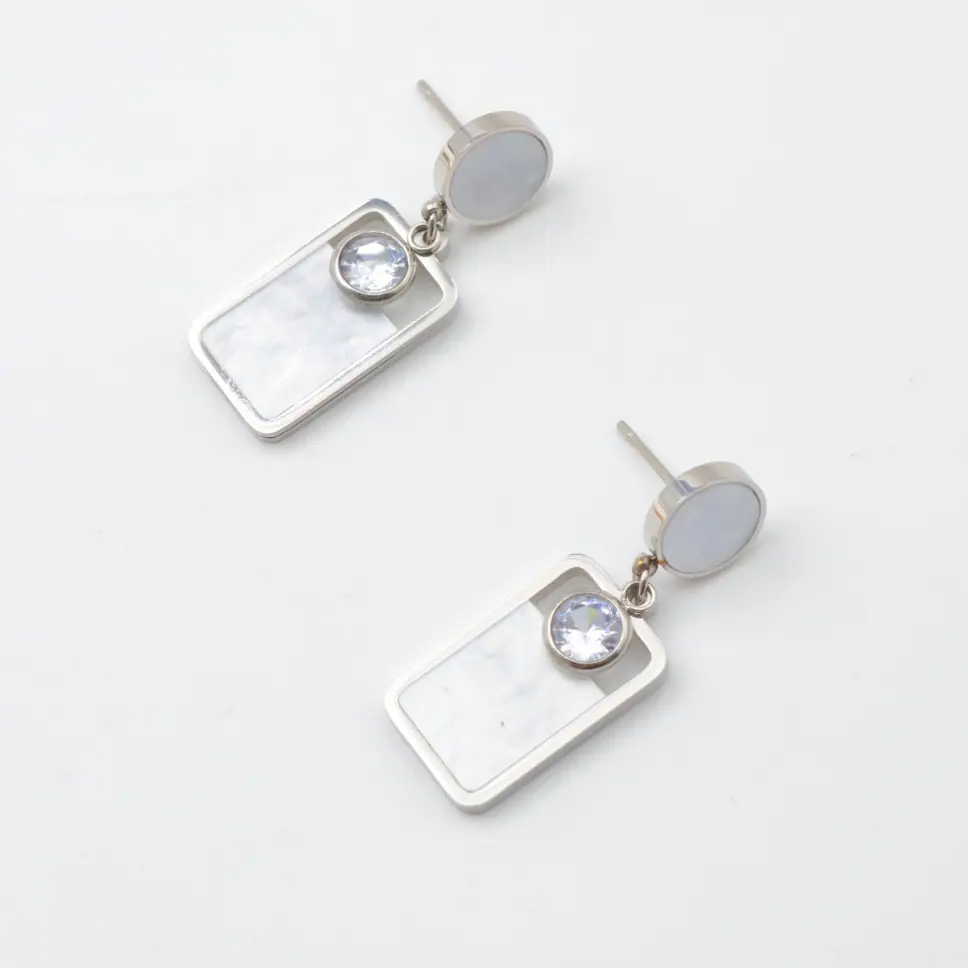 Épurées, lumineuses et tout-terrain, les boucles d’oreilles nacre Nacra signent un style net sans effort. Leur géométrie rectangle à bords doux encadre une incrustation nacrée qui capte la lumière, soulignée d’un cabochon cristal et d’un clou rond coordonné. Résultat : une brillance maîtrisée qui fonctionne au bureau comme en soirée.